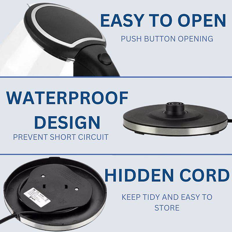 Our Electric Glass Kettle is crafted from high-grade stainless steel and durable borosilicate glass, ensuring that no plastic comes into contact with hot water. This design provides safe, BPA-free boiling, resulting in better-tasting water.